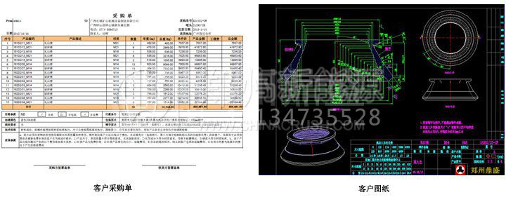 鄭州鼎盛公司還生產各種型號的高錳鋼圓錐破動錐、定錐,包括普通高錳鋼材質:錳13(Mn13)、錳13鉻2(Mn13Cr2)和超高錳鋼材質:錳18(Mn18)、錳18鉻2(Mn18Cr2)。